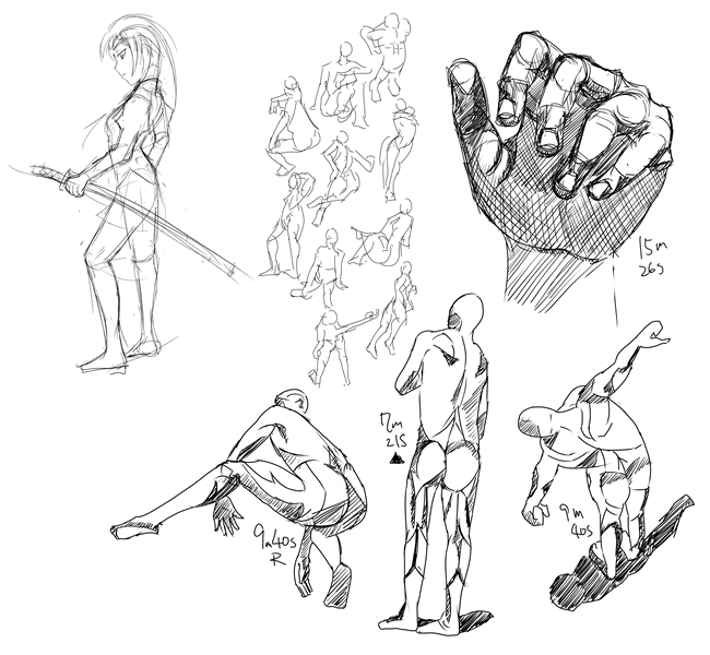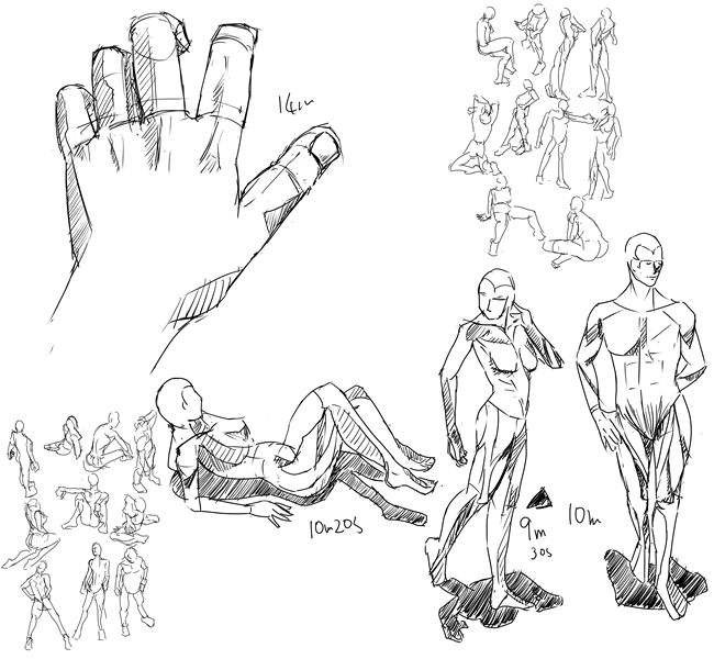 ポーマニ壱・弐&手を基本練習で残して残りの時間で模写orオリ絵を完成まで。ラフ出しは適当にって感じに。