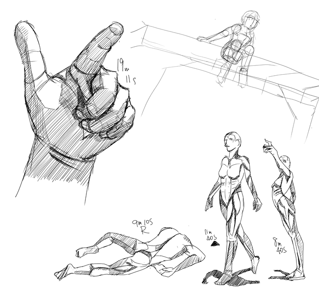 ちょっと手の描き方をかを考えて立体的にアタリをとろうとか考えてます。