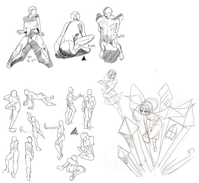 ふつーに消化。なんかこう俯瞰っぽいのとかパースついた感じにしたい。というラフ。