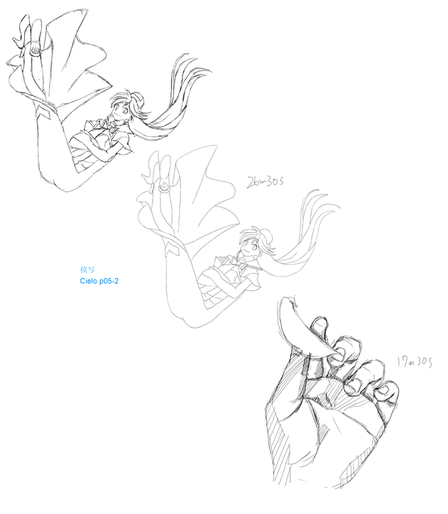 模写は昨日から引き続き「Cielo」でp4。p3は背景だったので飛ばし。背景もやるべきだけど今のLVだと人物だけでイッパイイッパイです。