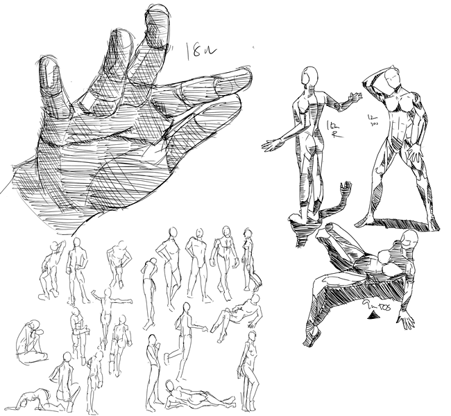 ちょっと手の描き方をかを考えて立体的にアタリをとろうとか考えてます。
