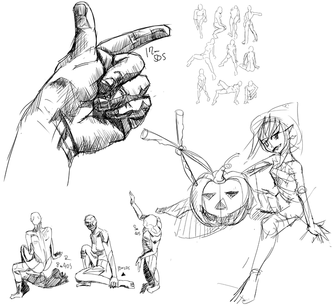 10月31日はハロウィーン(Halloween)なわけで。カボチャと人別々に描いて合わせたらカボチャ浮いてるし。