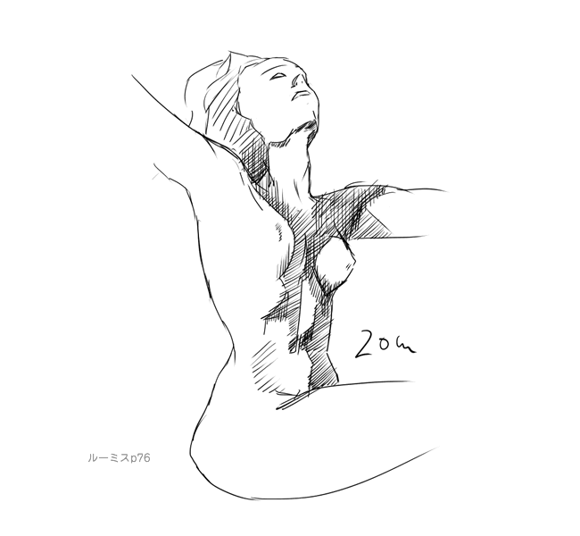 引き続きルーミスの陰影ページ。saiの筆でぬってみた。陰影部分より顔がなんか変であることに絶望。